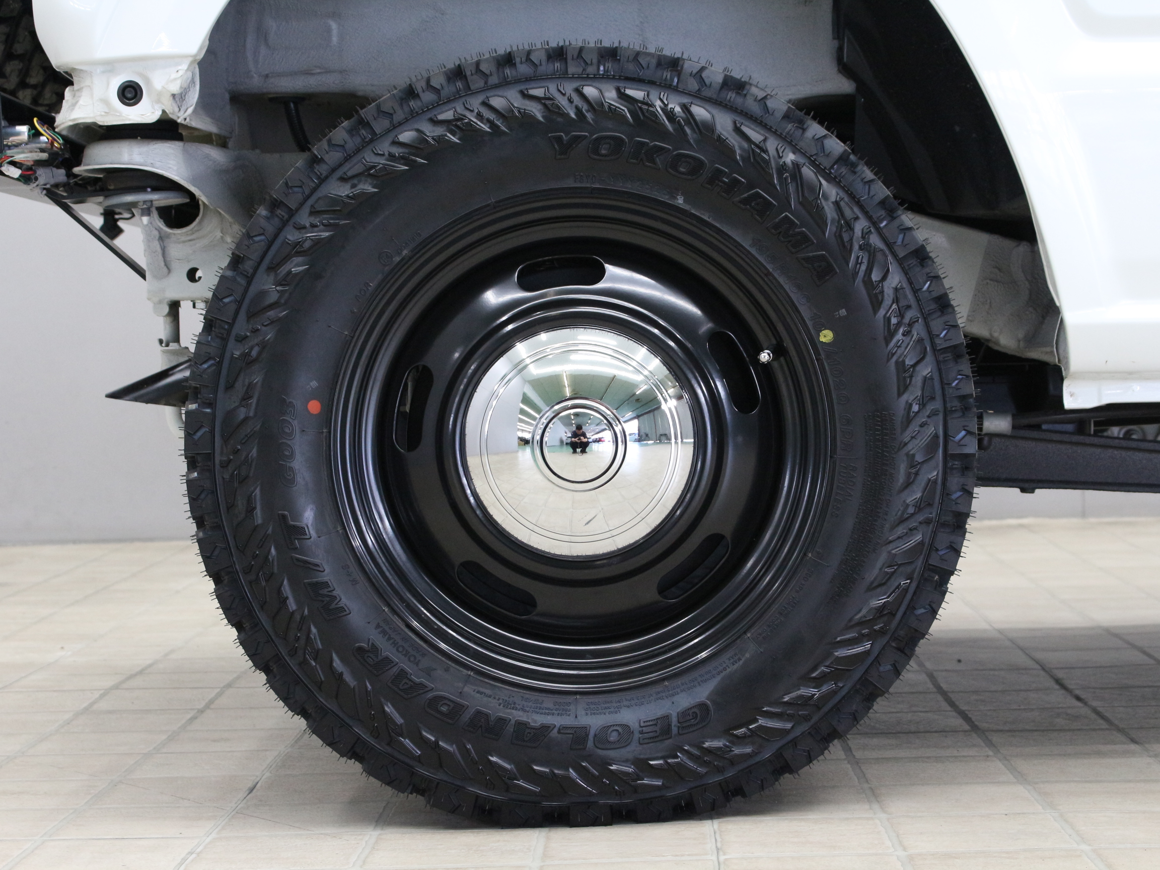 タイヤは武骨さを出すためにジオランダーM/T195/80R16を履かせボリュームアップ。